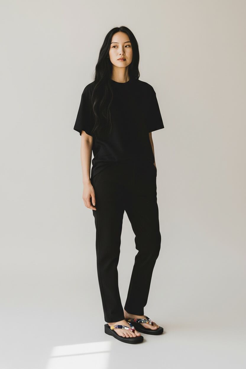 黒に、色をひとさじ。足元が主役になる花柄雪駄。