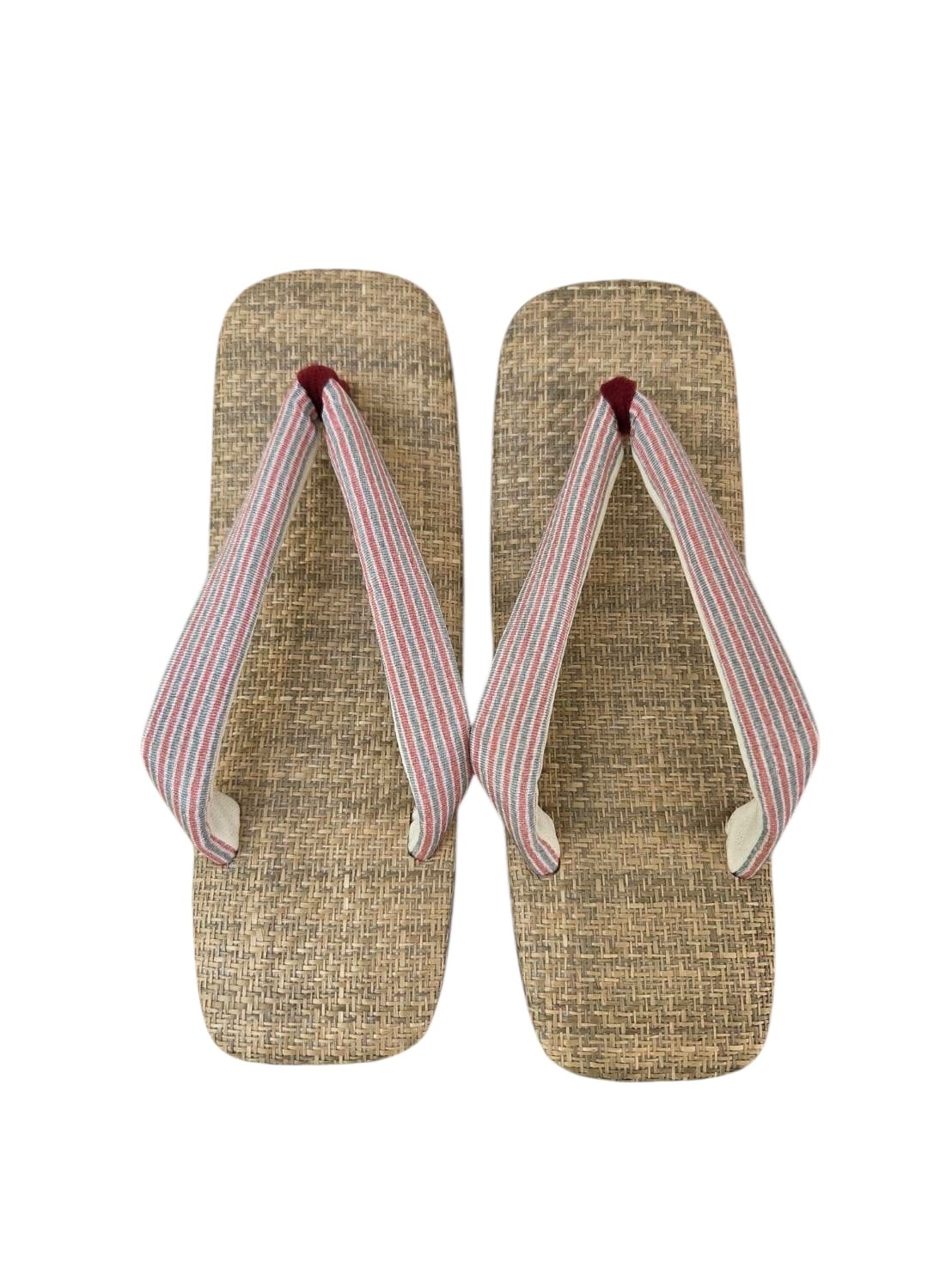【一点もの】カフェ草履/赤×グレーストライプ鼻緒(22〜25cm)|OKURIBIshop