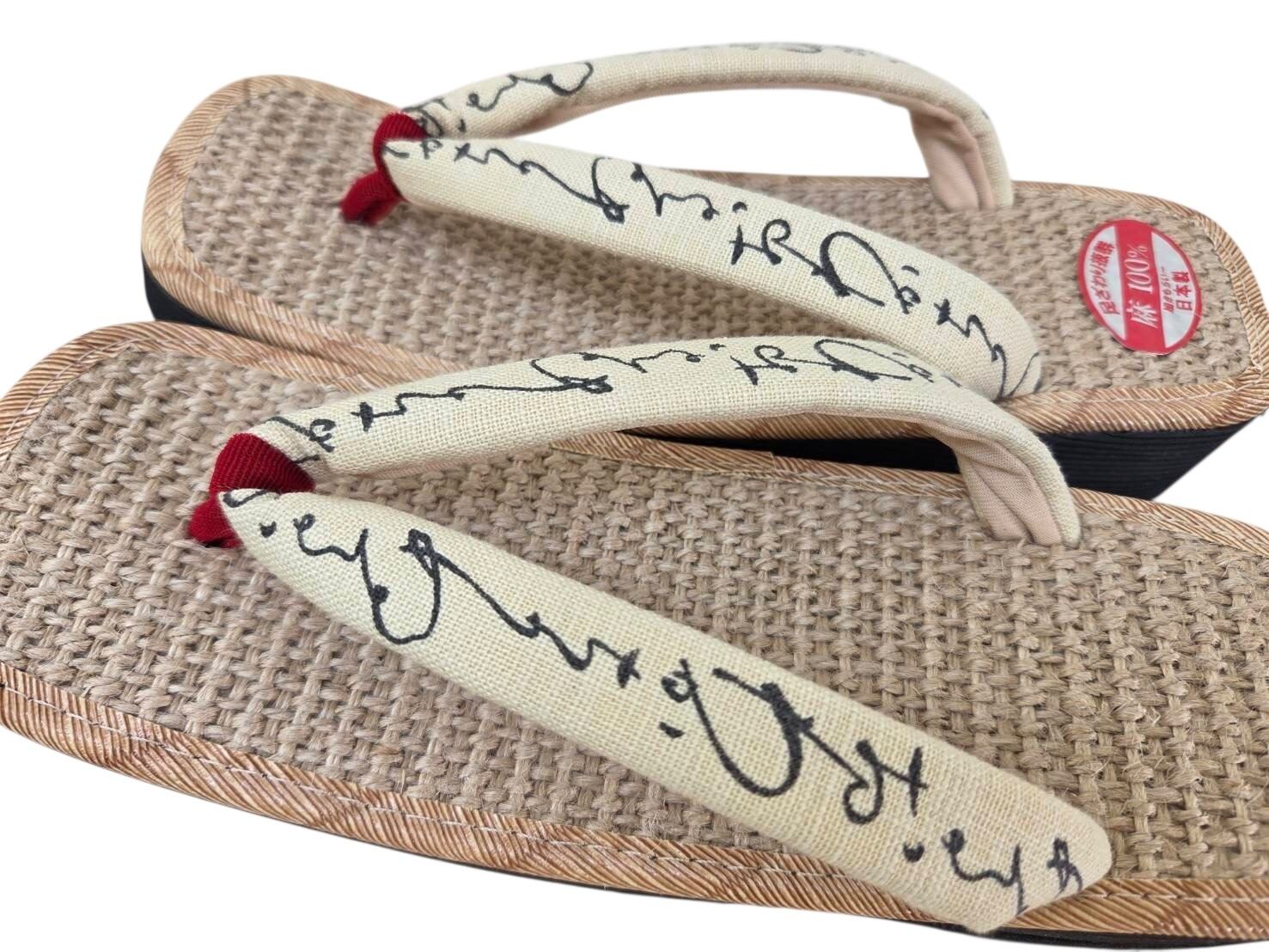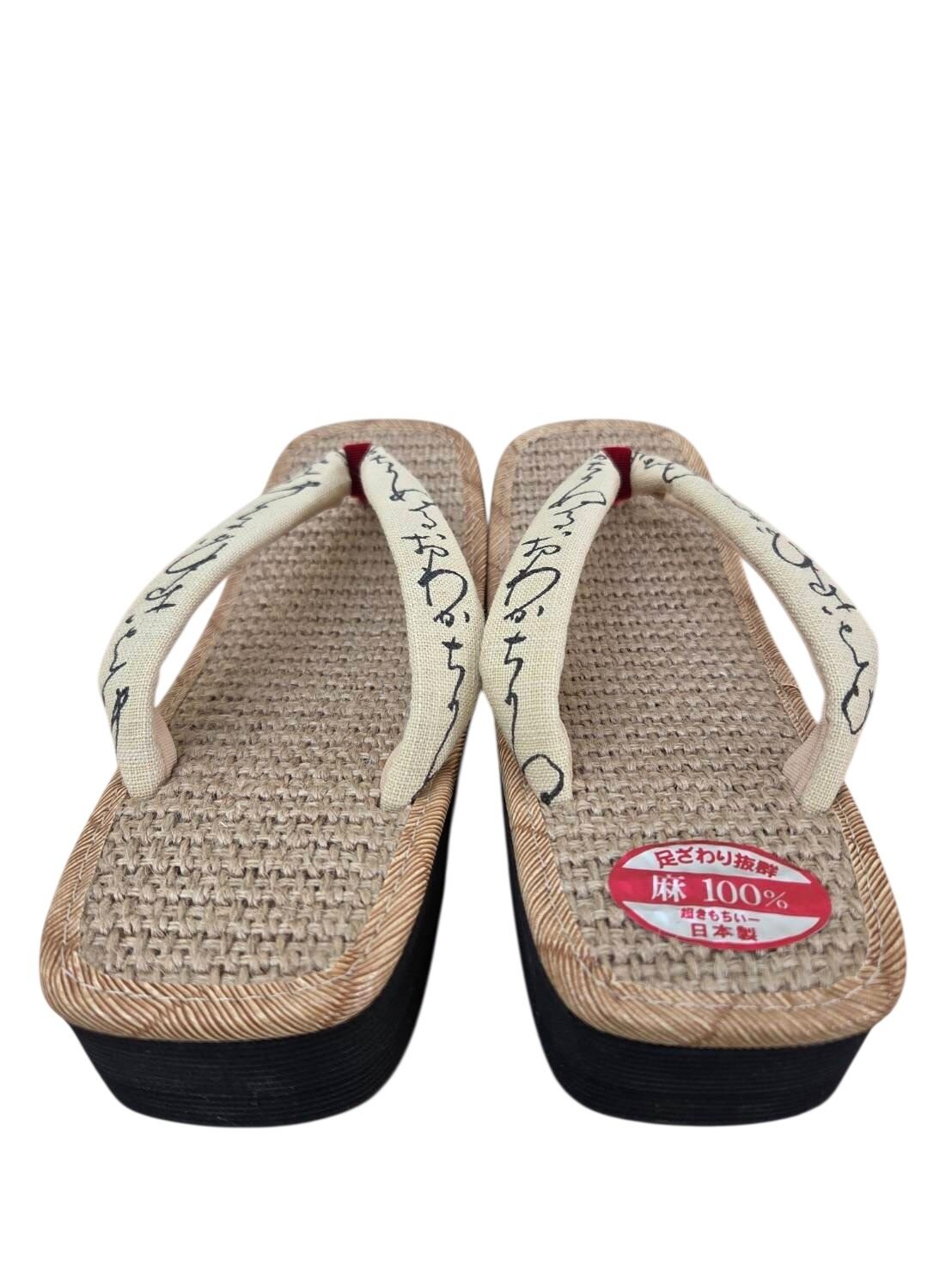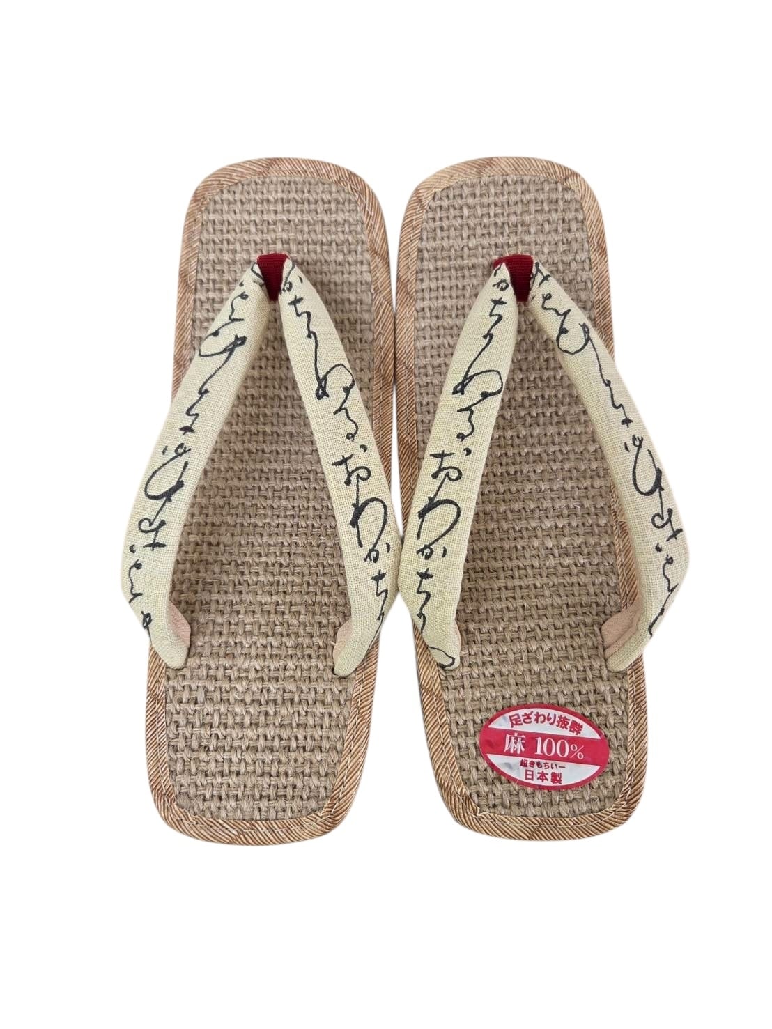 【一点もの】麻100%編み台×「いろはにほへと」鼻緒(ホワイト)雪駄|日本製|22〜24cm向け|OKURIBI shop