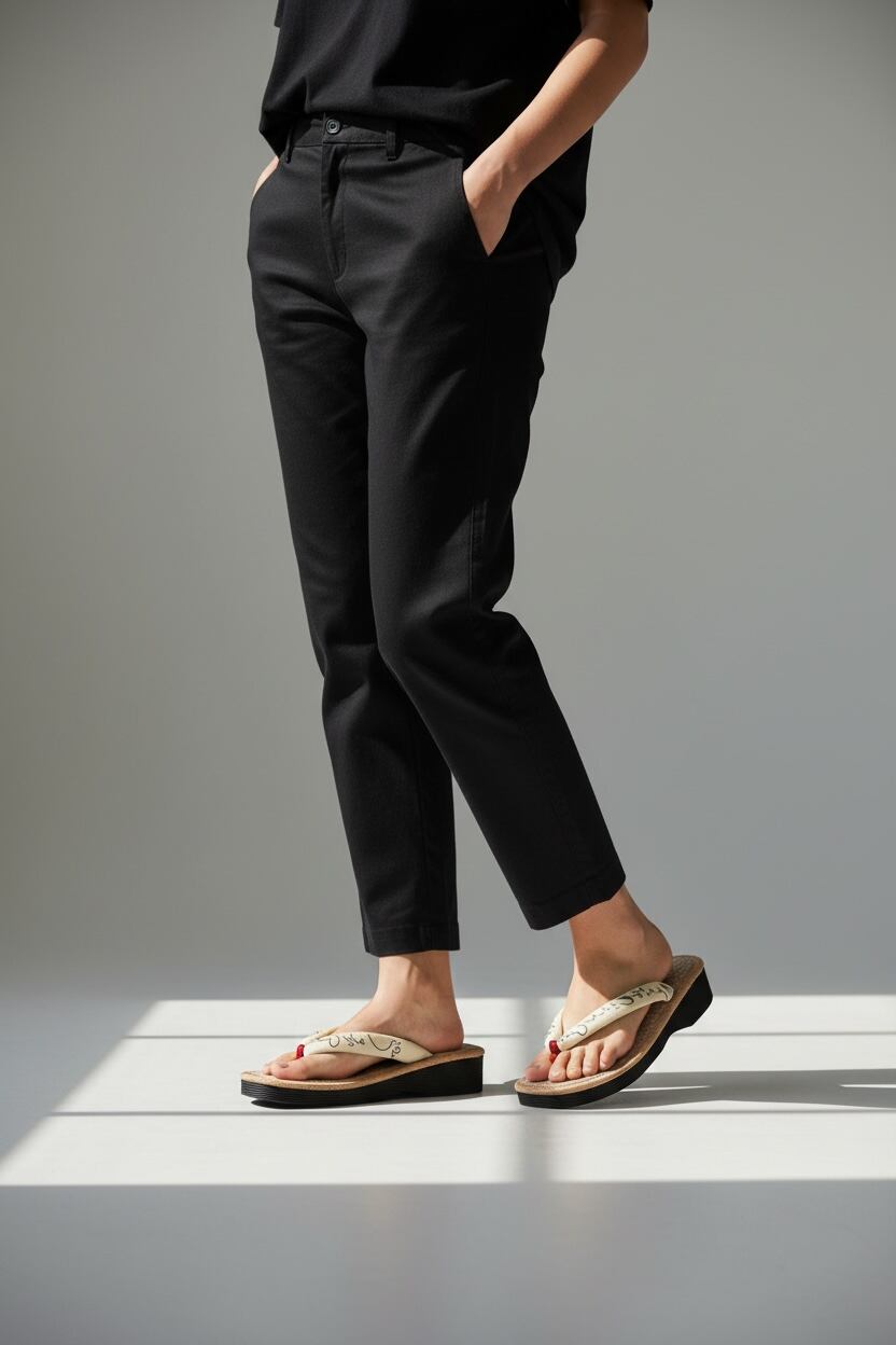 日本の魅力を体感できる、【一点もの】麻100%編み台と「いろはにほへと」鼻緒(ホワイト)の雪駄が登場しました!清潔感のあるホワイトの鼻緒が際立ち、シンプルでありながら上品な足元を演出します。浴衣や着物に加え、カジュアルな普段着にも合わせやすく、さまざまなシーンで活躍する一足です。OKURIBIshopが自信をもってお届けする特別な逸品です。