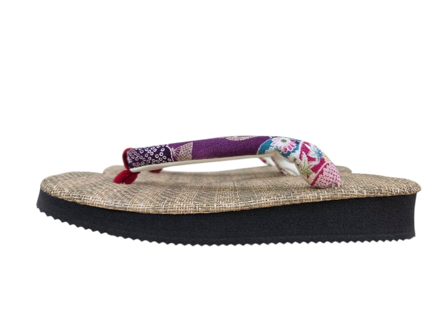 織り天雪駄, 一点もの, 藤むらさき, 花小紋鼻緒, 赤前ツボ, 黒底, レディース, 浴衣, 着物, 普段着, 22cm, 23cm, 24cm, 25cm, OKURIBIshop