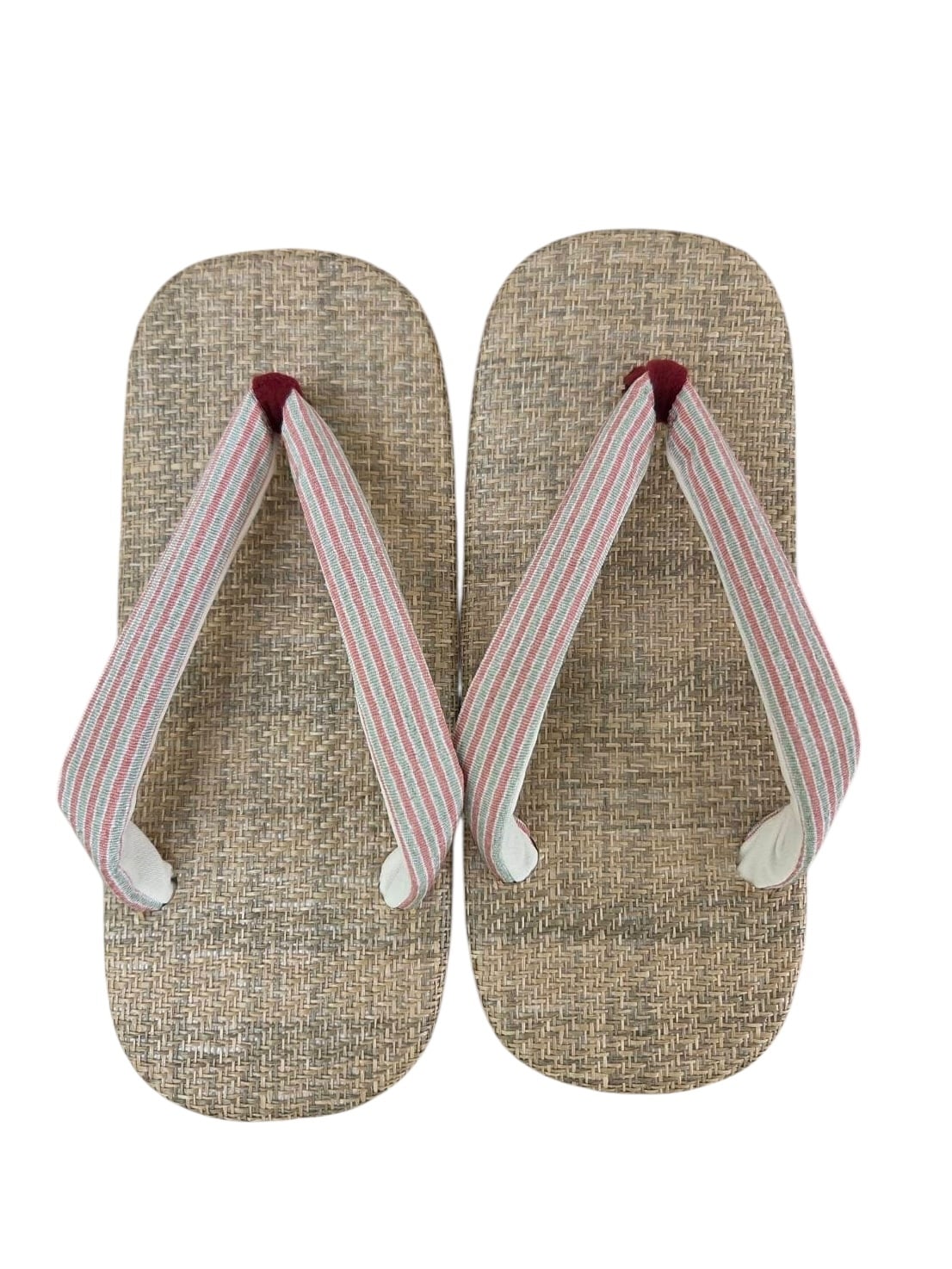 【グレー×ピンクストライプ鼻緒】畳風ソール 雪駄サンダル(一点もの)