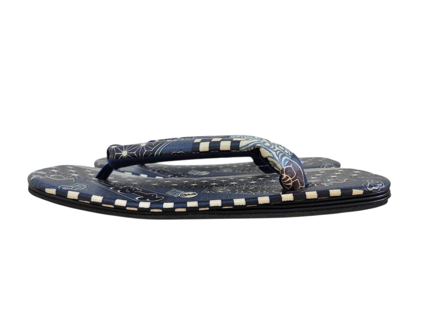 和柄ミックス雪駄, 一点もの, 本牛革底, メンズ, 藍, 麻の葉, 縞, 市松, 青海波, 浴衣, 着物, 普段着, 25〜27cm, OKURIBIshop