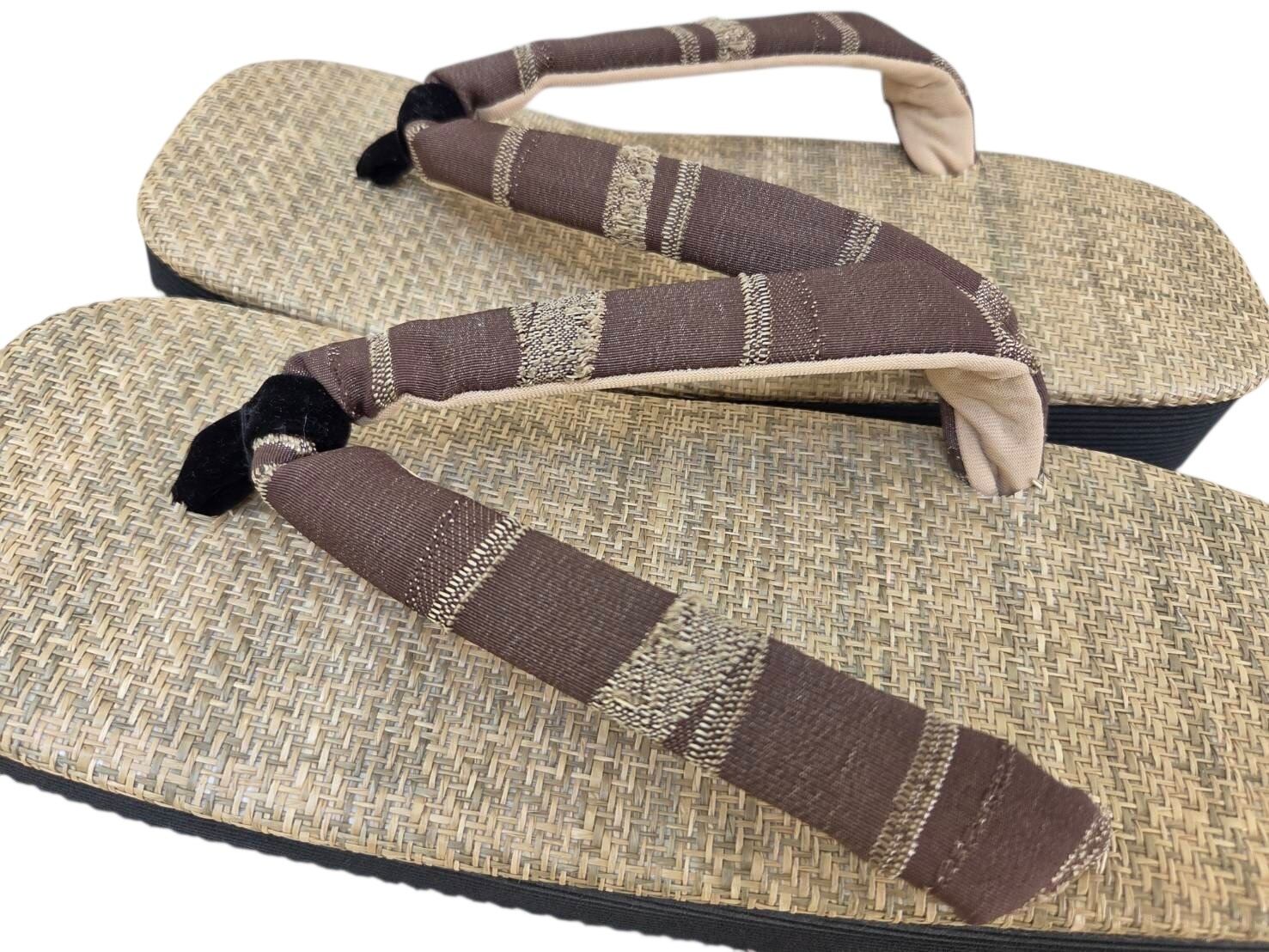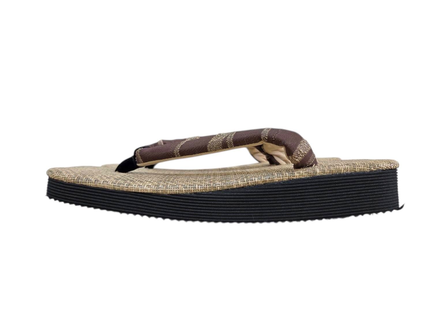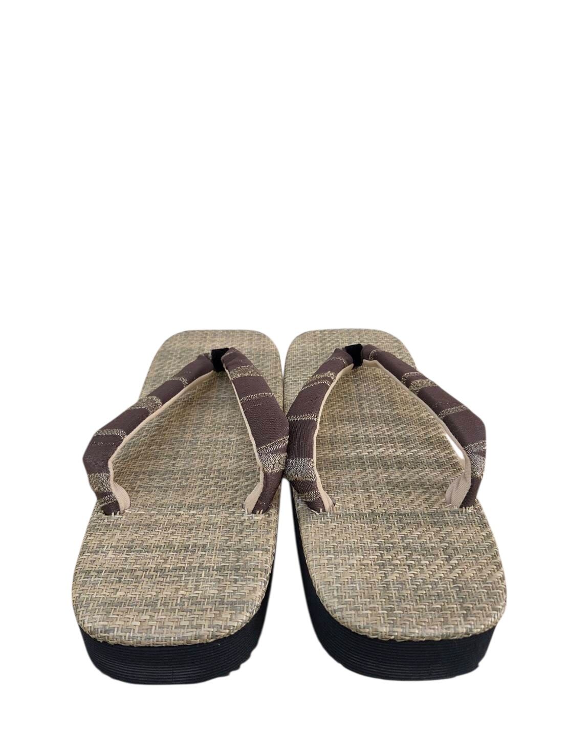 ナチュラル畳目, ブラウンストライプ, 鼻緒雪駄, 一点もの, 本牛革底, メンズ, 浴衣, 着物, 普段着, 25〜27cm, OKURIBIshop