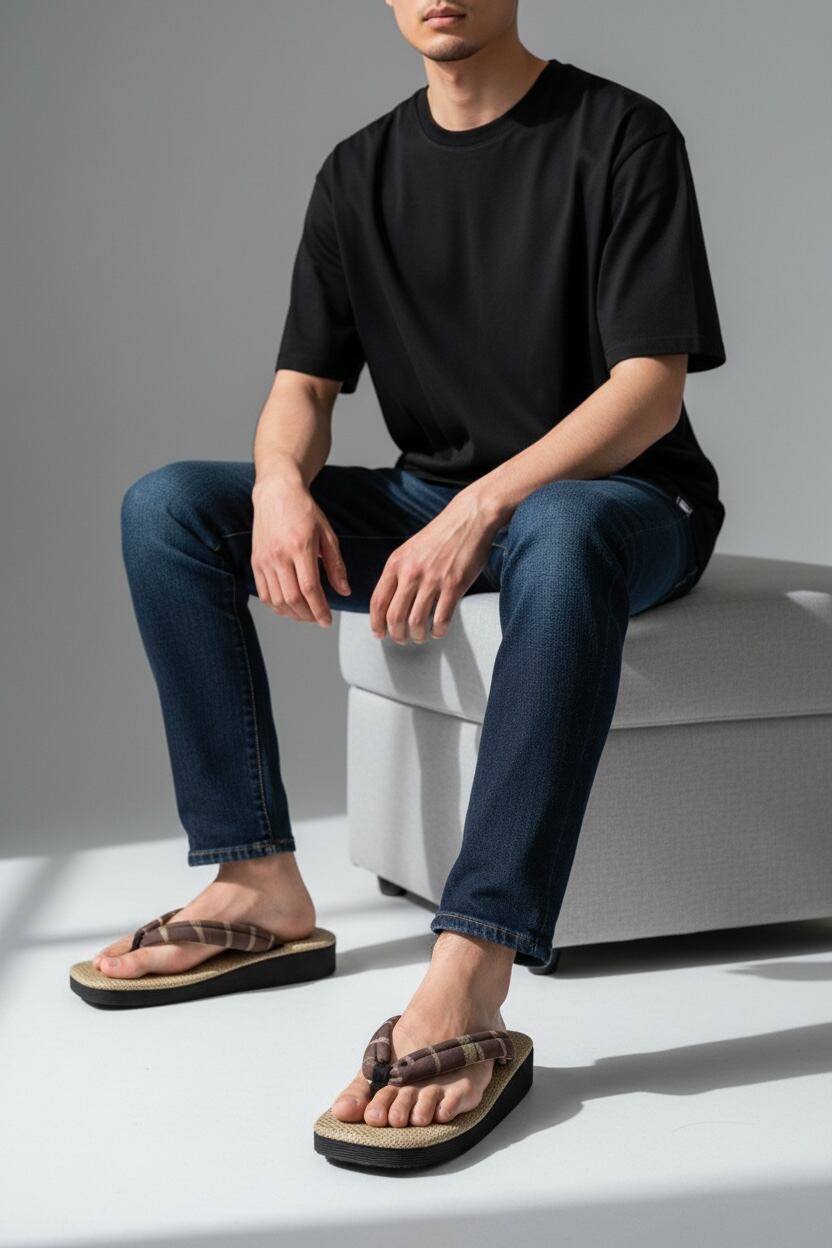 ・ブラウンストライプの鼻緒がスタイリッシュさを引き立てる