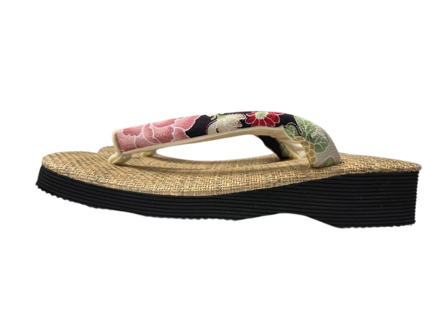 草履,麻100%,足さらり草履,黒,花柄,夏,和装,浴衣,旅行,祭り,サンダル,日本製,OKURIBIshop
